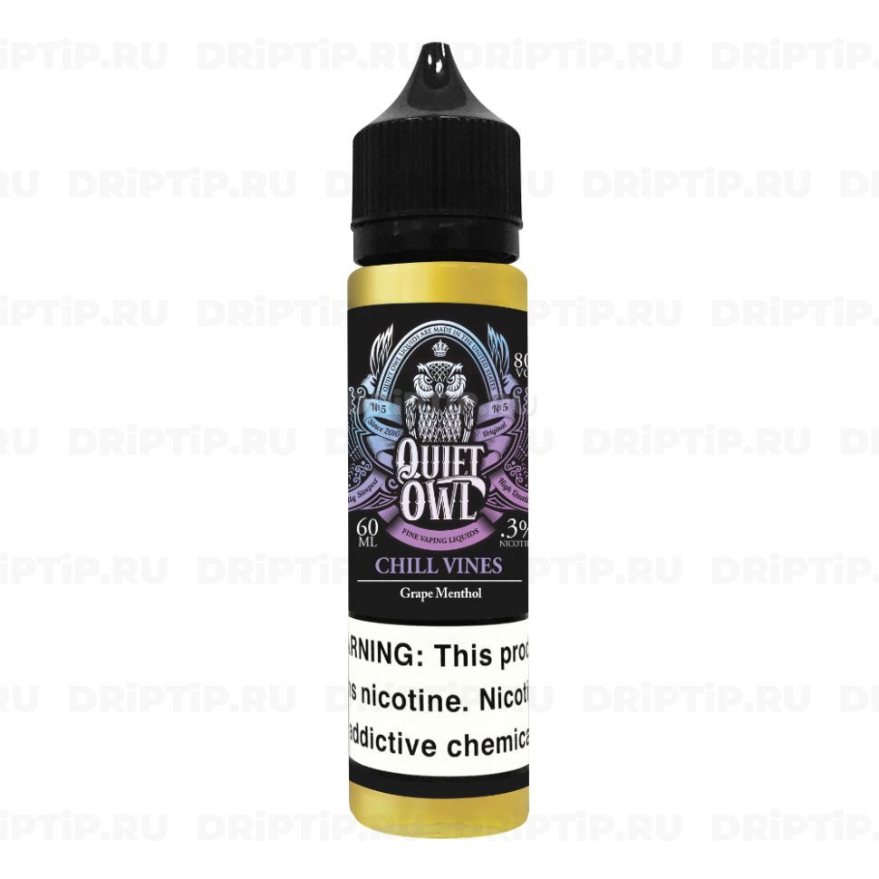 Бренд Quiet Owl Страна США Производитель Element Liquids Вкус Ягодный, С холодком, Пряности, Виноград, Мята Объем (мл) 60 Крепость 0 мг, 3 мг Баланс VG/PG 80/20 Тип никотина Без никотина, Никобустер