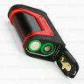- Корпус боксмода использует сочетание большого количества разнообразных материалов - так, кнопка Fire и управляющие "+" и "-" выполнены из оцинкованной стали, корпус выполнен из прочного силикона, металлическая вставка на корпусе - это алюминий и задняя панель сделана из кожи